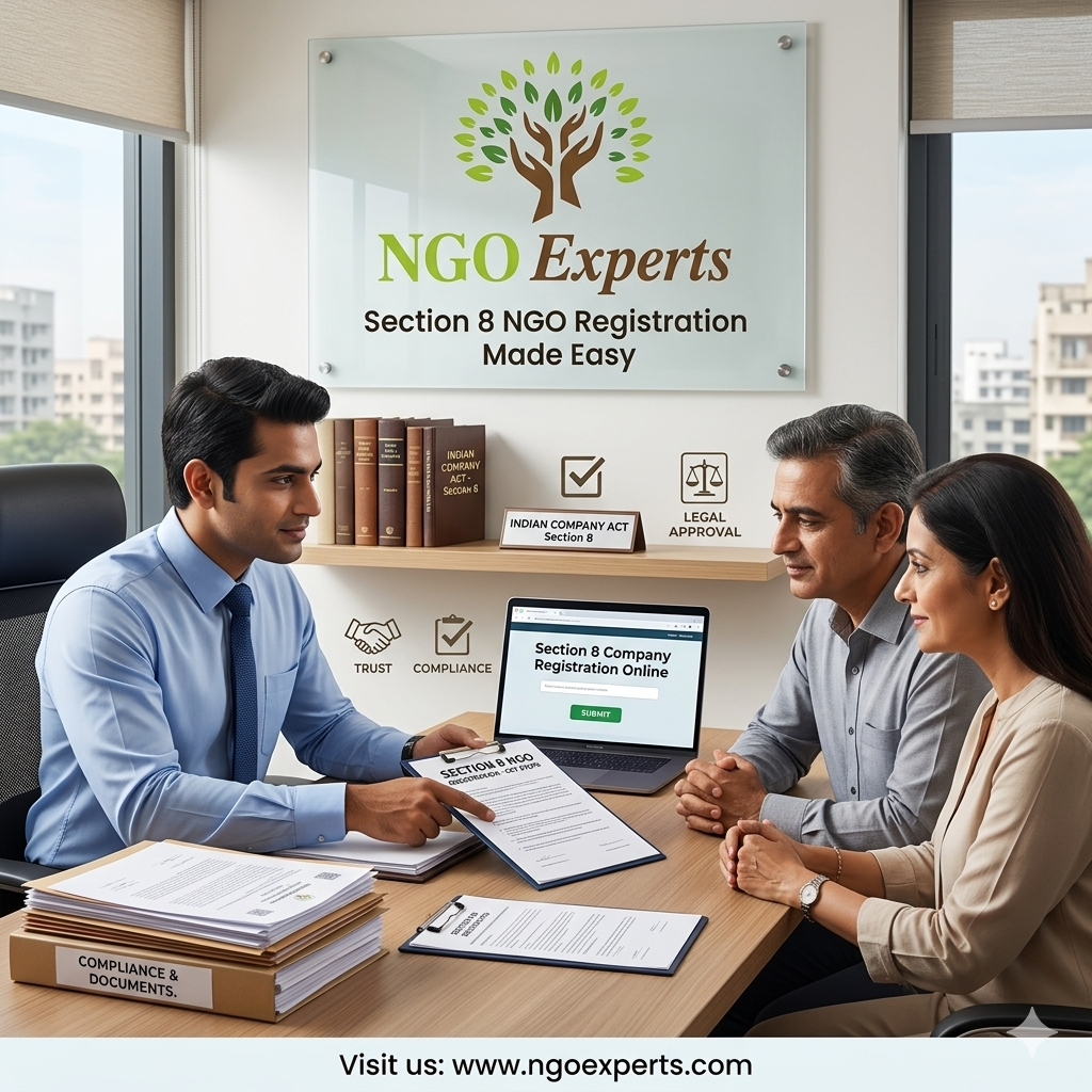 NGOExperts simplifies Section 8 NGO registration with a smooth and reliable process. Our team handles documentation, compliance, and approvals with accuracy and care. We help you establish your non-profit legally while saving time and effort. Choose NGOExperts for professional support and a hassle-free experience in building your organization.