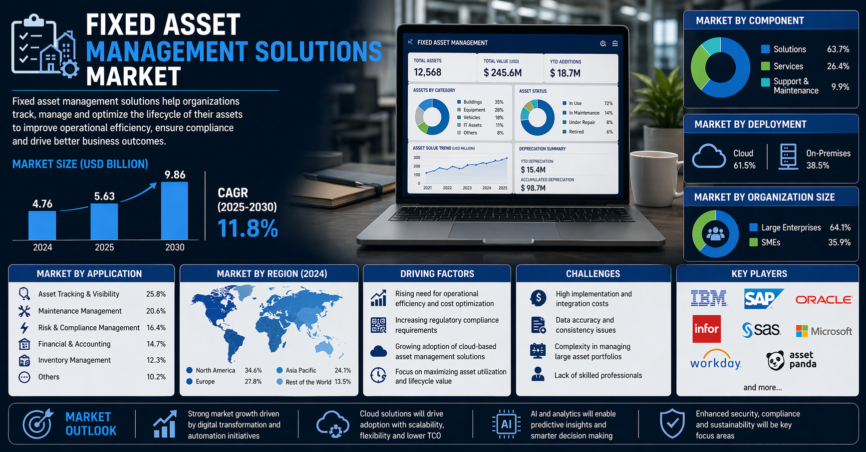 The global market is highly competitive, with leading players focusing on expanding their geographic presence and enhancing product offerings. Key companies operating in the Fixed Asset Management Solutions Market include: