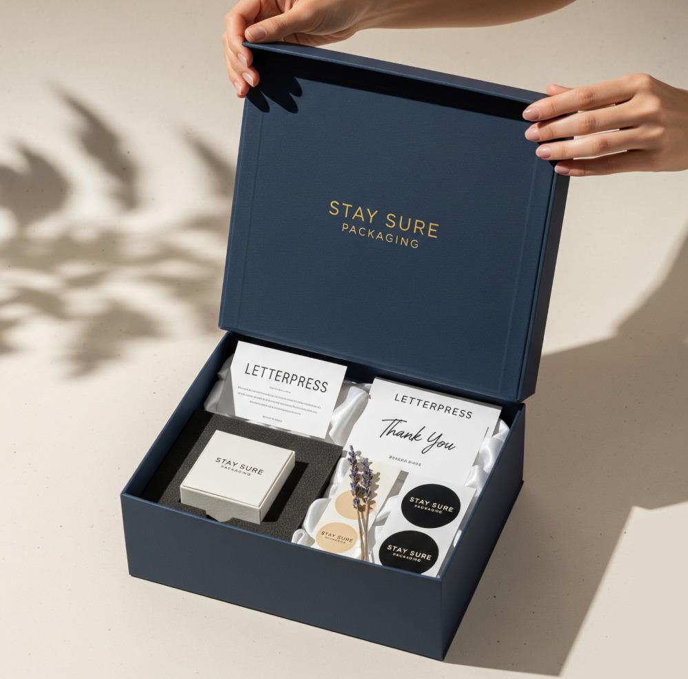 Use rigid boxes or drawer styles for premium gift sets. For cost savings, a sturdy sleeve with internal dividers works well.
