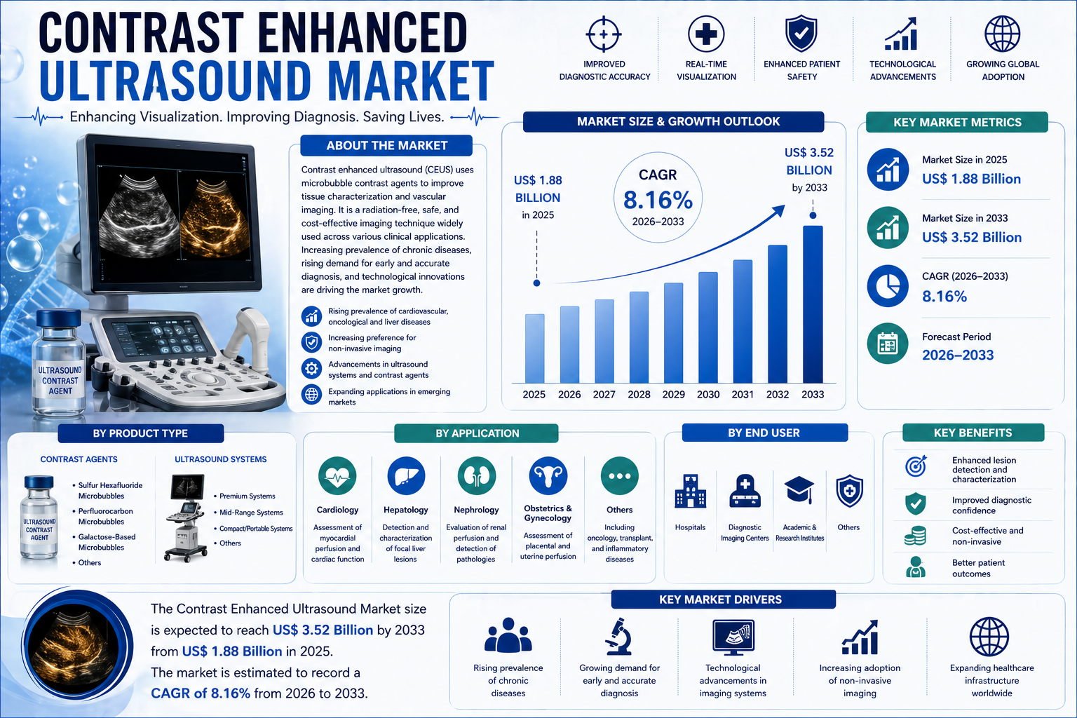 Contrast Enhanced Ultrasound Market Size to Reach US$ 3.52 Billion by 2033 at 8.16% CAGR: Industry Trends, Growth Analysis & Outlook