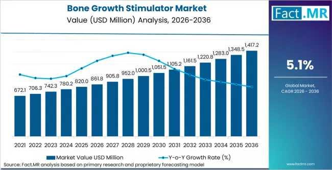 The global landscape for orthopedic recovery is undergoing a structural shift as clinical mandates increasingly favor non-invasive intervention. According to the latest market analysis, the global Bone Growth Stimulator Market was valued at USD 793 million in 2025 and is projected to reach USD 861.82 million in 2026. As regulatory bodies and payers formalize reimbursement for advanced healing technologies, the market is forecast to expand to USD 1,417.24 million by 2036, representing a sustained CAGR of 5.1%.