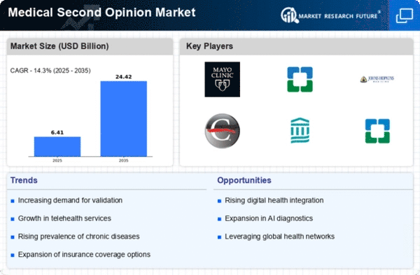 The Medical Second Opinion Market Developments include the launch of innovative digital platforms and services that improve patient access to expert consultations. The Medical Second Opinion Market Top Companies are focusing on expanding their global presence and improving service quality. The Medical Second Opinion Market Growth Dynamics include increasing digital adoption, rising healthcare awareness, and technological advancements. The Medical Second Opinion Market Projections indicate strong long-term growth as more patients rely on expert opinions for healthcare decisions.