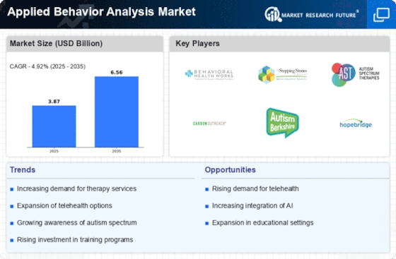 The Applied Behavior Analysis Market Share is influenced by service providers offering specialized therapy programs. The Applied Behavior Analysis Market Data highlights rising adoption among families, schools, and healthcare providers. The Applied Behavior Analysis Market Segment diversification supports growth by addressing various behavioral conditions and treatment settings. As awareness continues to increase, the demand for ABA therapy services is expected to grow significantly.