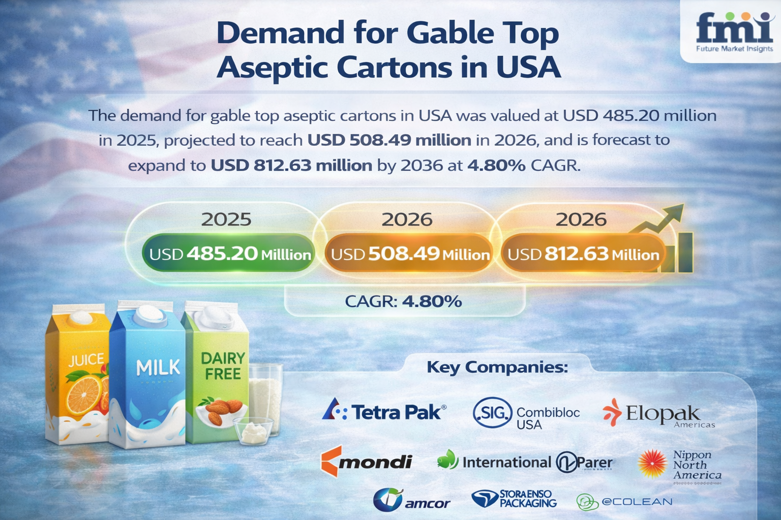 Key Companies Profiled: Tetra Pak USA; SIG Combibloc USA; Elopak Americas; Greatview USA; International Paper; Pactiv Evergreen; Stora Enso North America; Nippon Paper Industries USA; Amcor Rigid Packaging; Ecolean North America