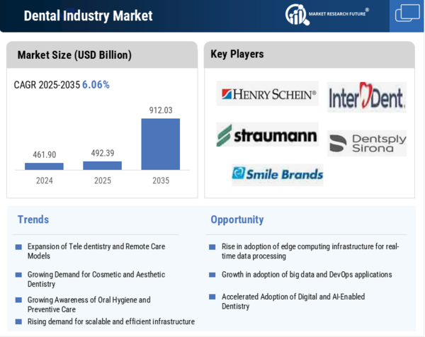 The Dental Industry Market growth is driven by increasing demand for advanced dental treatments and improved patient care. The growing prevalence of dental diseases and the need for effective treatment solutions are encouraging the adoption of modern dental technologies. Patients are increasingly seeking minimally invasive procedures that offer faster recovery and better outcomes. This trend is driving innovation in dental materials and equipment.