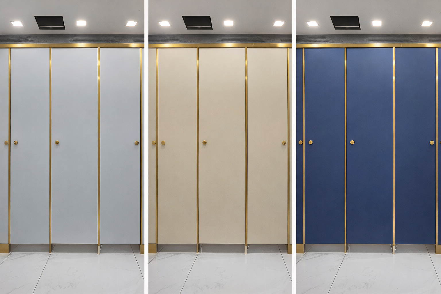 Bold panel colors paired with refined gold hardware create premium toilet cubicles that impress. Customizable designs elevate restrooms in hospitality, corporate, and retail environments.